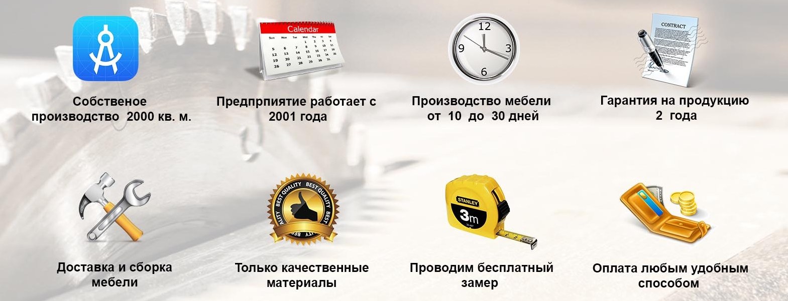 На свою мебель мы предоставляем гарантийный срок 24 месяца. Но, срок эксплуатаци наших изделий по каркасу и наполнителю рассчитан не менее чем на 10 лет. Большую роль в длительности эксплуатации будет играть выбранный материал обивки .